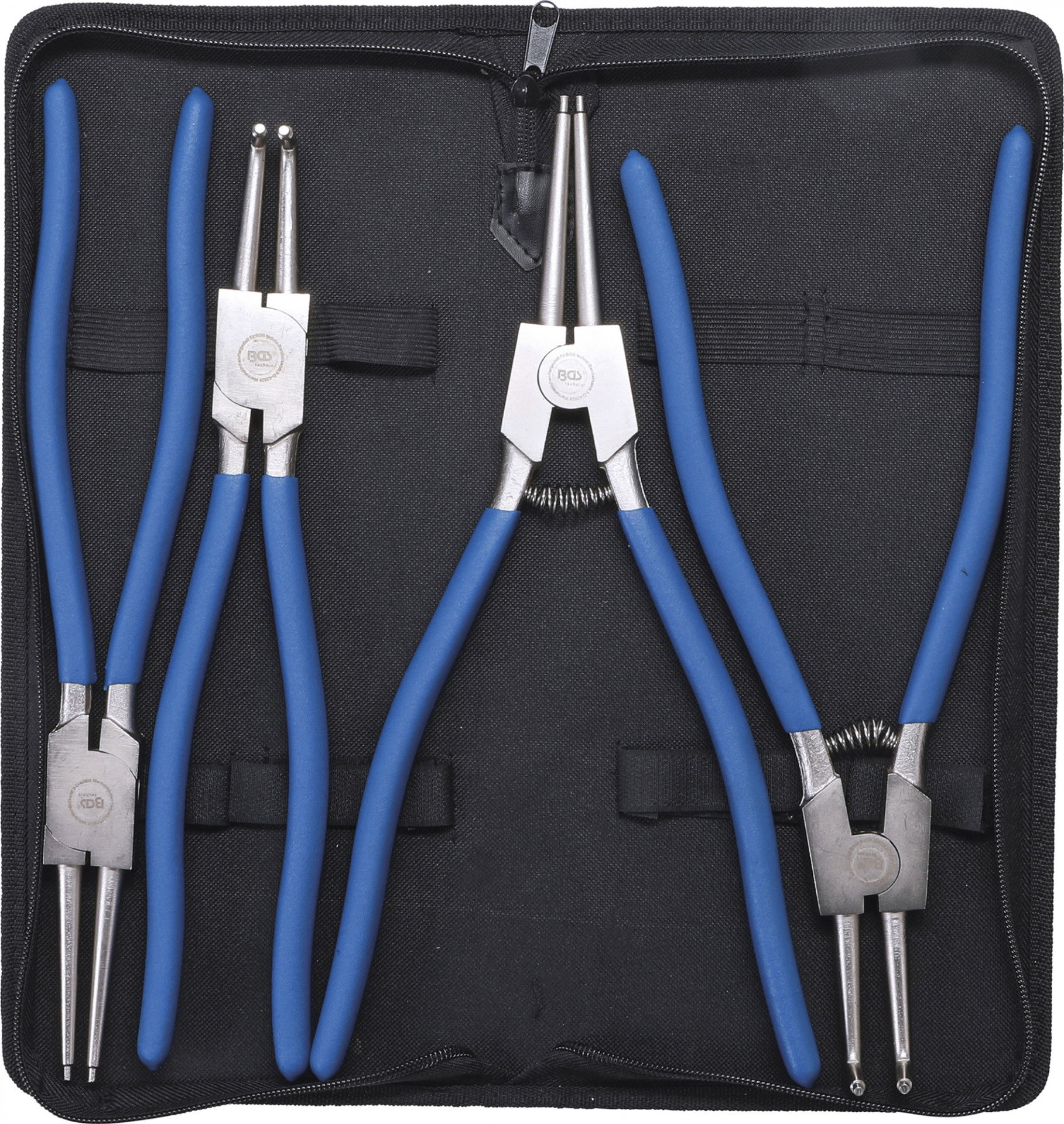Gumírozott nyelű fogók zippzáras kivitelű szövet tokban.